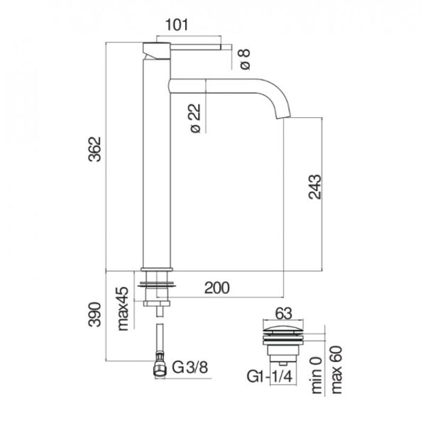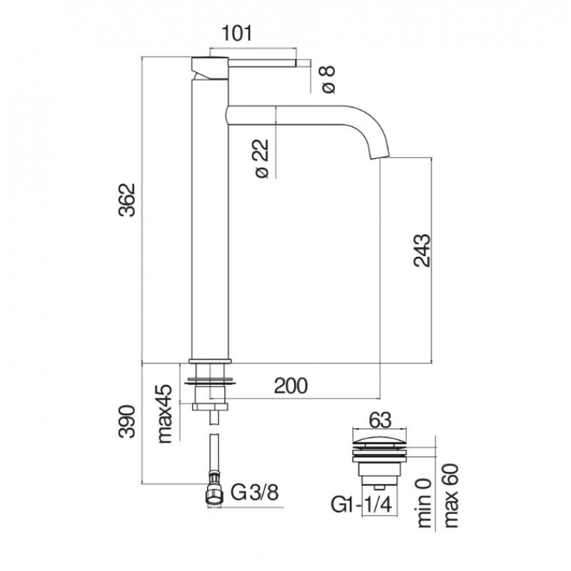 1 отверстие для монтажаДополнительные характеристики:Диаметр резьбы подводки (G): 3/8”