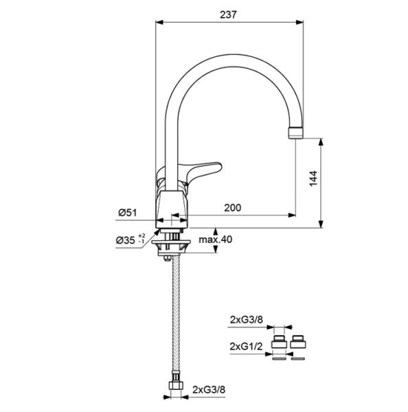 • Высота смесителя: