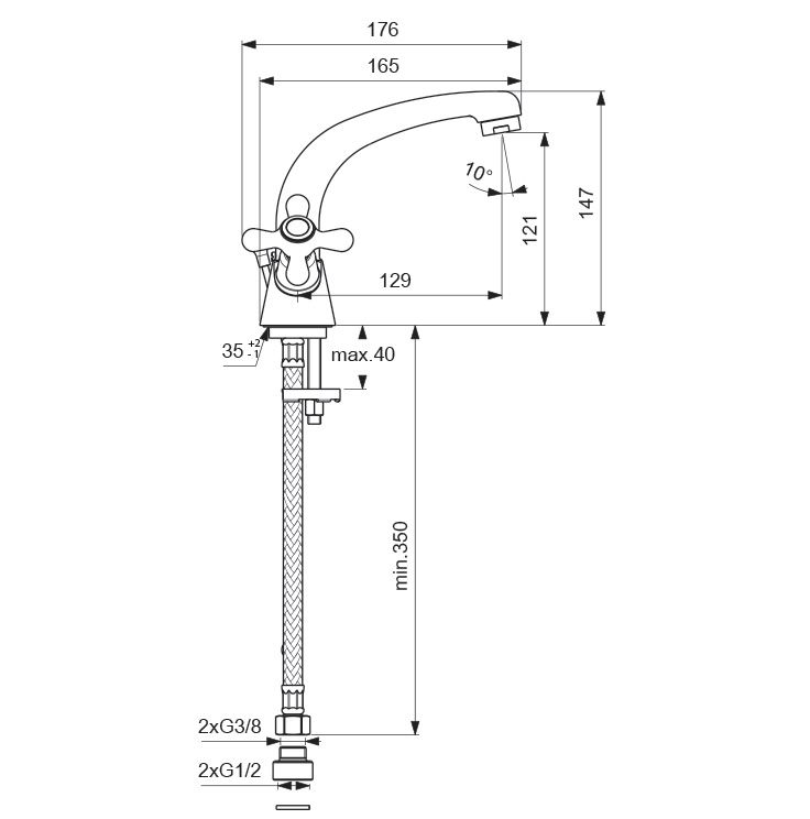 • Высота смесителя: