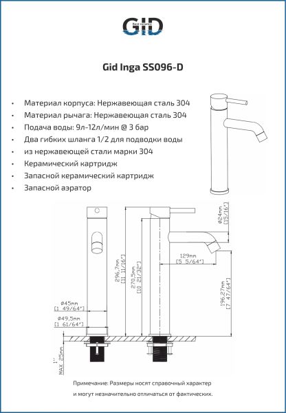 Смеситель высокий для раковины Gid Inga SS096-CH-D SS096CHD хром