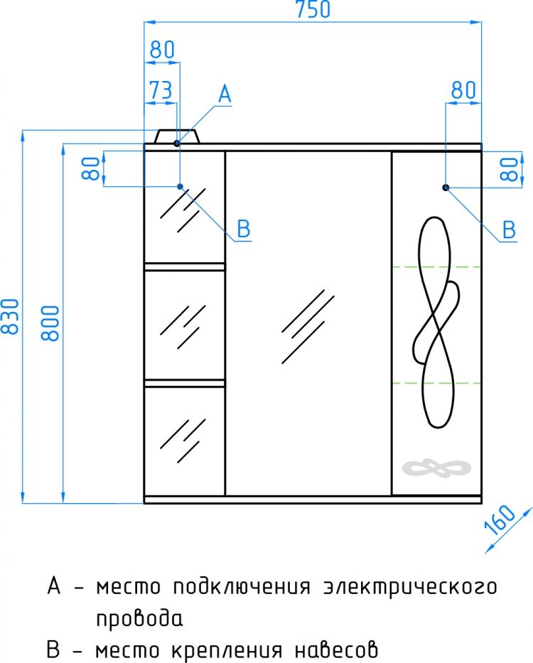 - Тип:зеркало-шкаф с подсветкой