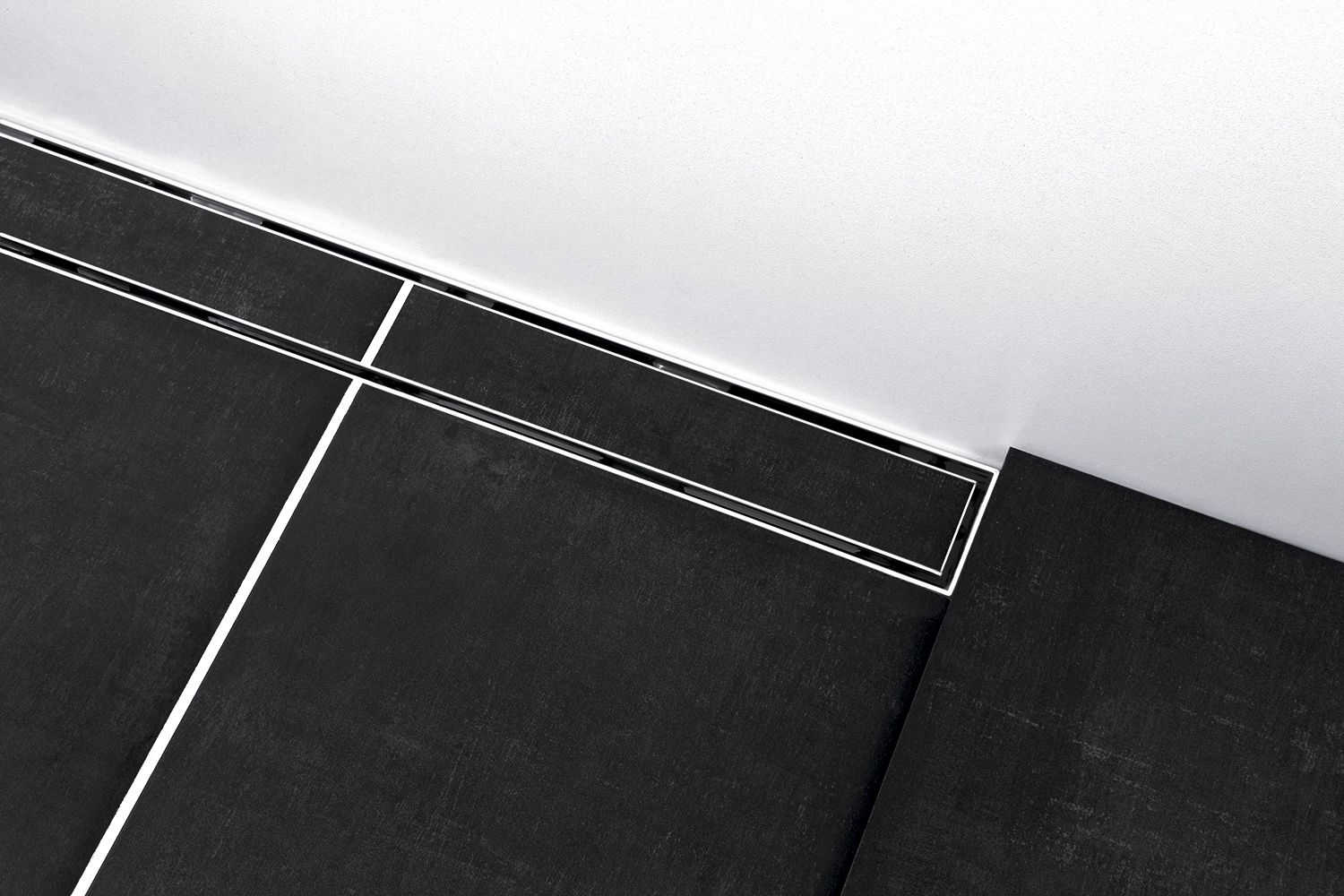 Комплект поставки: • дренажный канал из нержавеющей стали; • cифон DN 50, выход вбок, производительность (согласно DIN EN 1253) при уровне воды 10/20 мм над решеткой: 0,7/0,8 л/с; уровень гидрозатвора = 25 мм согласно DIN EN 1253; • гидроизоляционная манжета; • погружной стакан с мембраной; • 4 опоры, высота до 125 мм (до уровня чистового пола); • двухсторонняя вставка 2 в 1: основа для плитки “tile” и панель “steel” Внимание! Минимальная высота монтажа 95 мм (от чернового пола до уровня чистового покрытия)