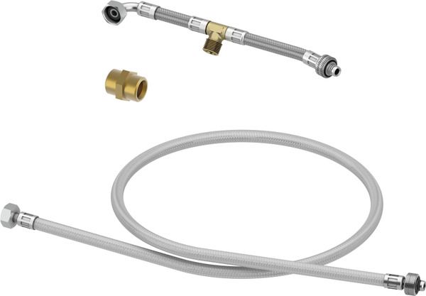 Комплект для подключения унитазов-биде для установки на застенный модуль 9300079. Комплект поставки: • Армированный шланг 3/8" • Армированный шланг с тройником 3/8" для установки внутри бачка • Соединительный элемент 3/8"