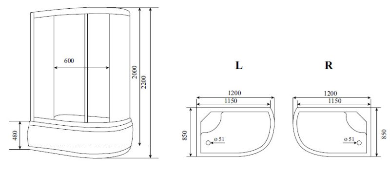 Timo Lux T-7720 L душевая кабина (120*85*220*)