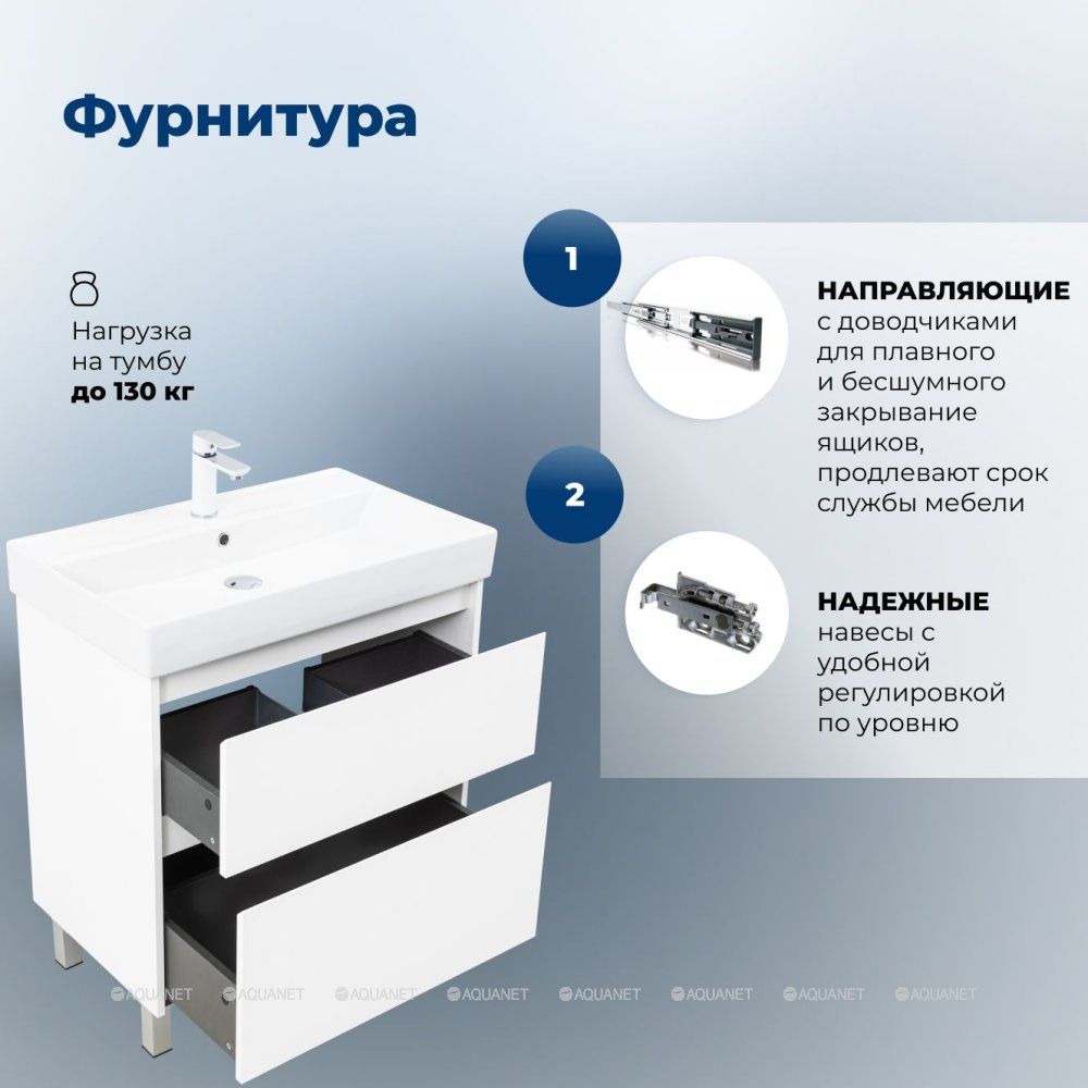 Тумба под раковину Aquanet Nova Lite 2.0 75 напольная, белый глянец