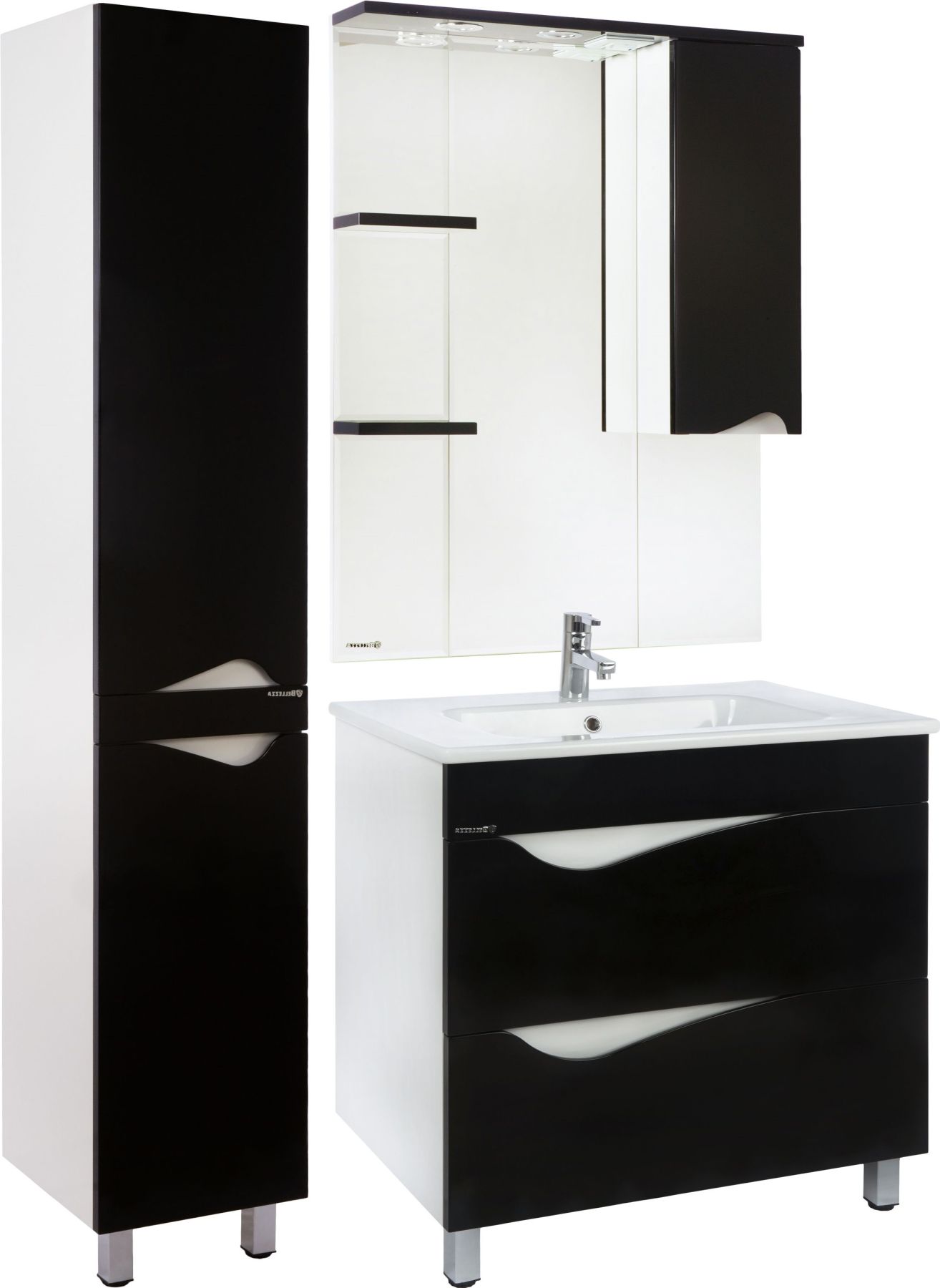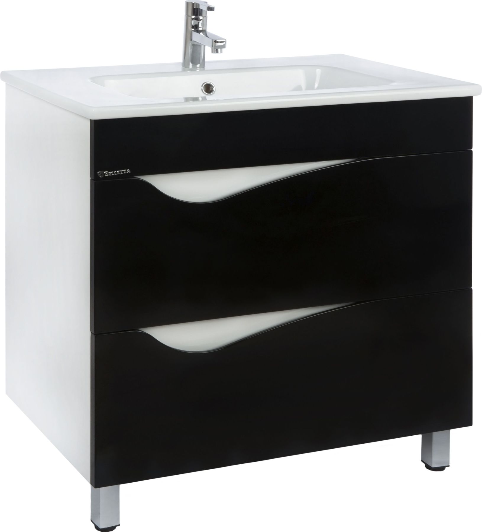 Подвесная тумба Bellezza Эйфория шириной 85 см в черном глянцевом исполнении — это лаконичное и функциональное решение для современных ванных комнат. Модель с двумя выдвижными ящиками сочетает в себе выразительную эстетику, практичность хранения и устойчивость к влажной среде, идеально вписываясь в интерьеры, где важны чистота линий и визуальная глубина.