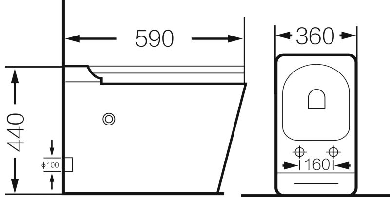 • Прилегание унитаза к стене: