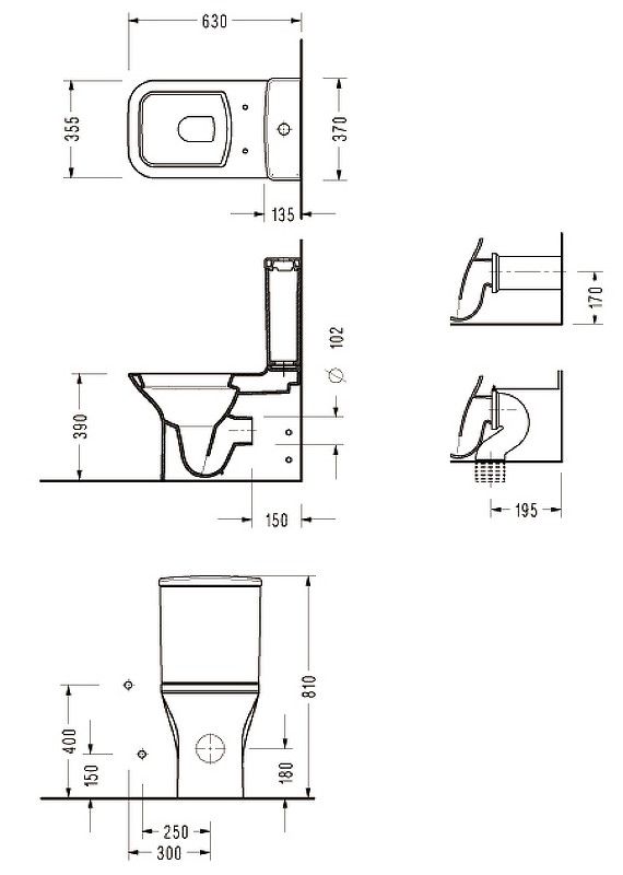 • Прилегание унитаза к стене: