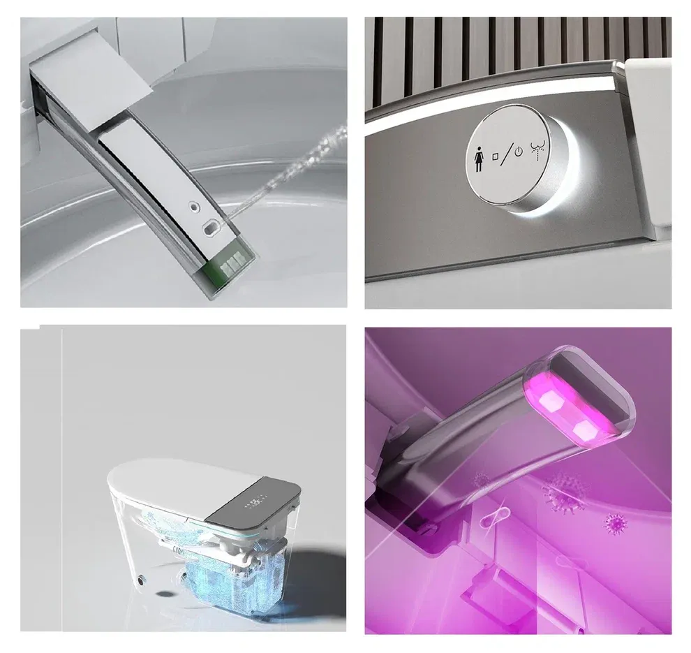 Smart унитазы — это не просто инновация в мире сантехники, это настоящая революция в области комфорта и удобства. Их стильный и современный дизайн вписывается в любую ванную комнату, добавляя изысканности и утонченности. Такие унитазы оборудованы множеством функций, которые делают повседневные процедуры гигиеничными и легкими.Встроенные функции биде обеспечивают идеальную чистоту, а подогрев сидения делает использование унитаза комфортным, независимо от времени года. Автоматический смыв гарантирует, что вам больше не придется беспокоиться о необходимости ручного управления — все сделает за вас умная электроника. Для установки интеллектуального туалета не нужна инсталляция, ему не требуется сливной бачок. Подключается напрямую к водопроводу и канализации. Для работы всех функций понадобится подключение к электросети стандартного напряжения 220В.Смарт унитазы не только символ стиля, но и заботы о здоровье всей семьи, делая повседневную жизнь более комфортной и безопасной.Характеристики: