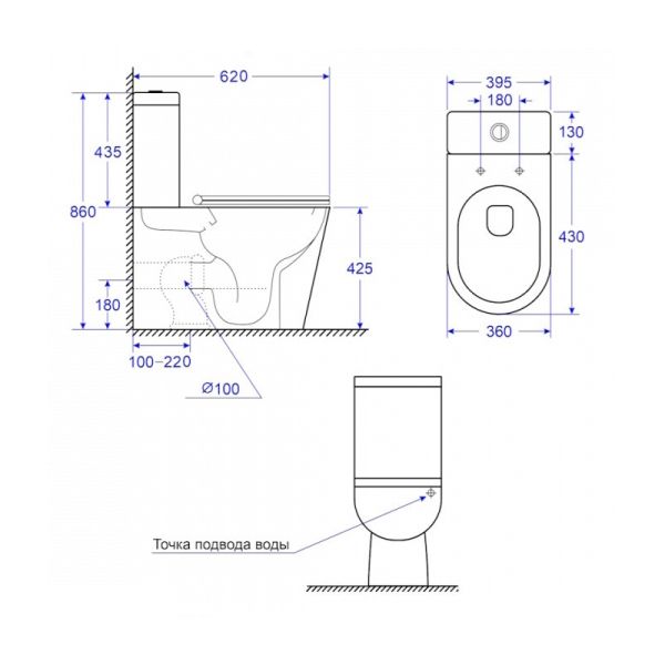 - Подвод воды:сзади