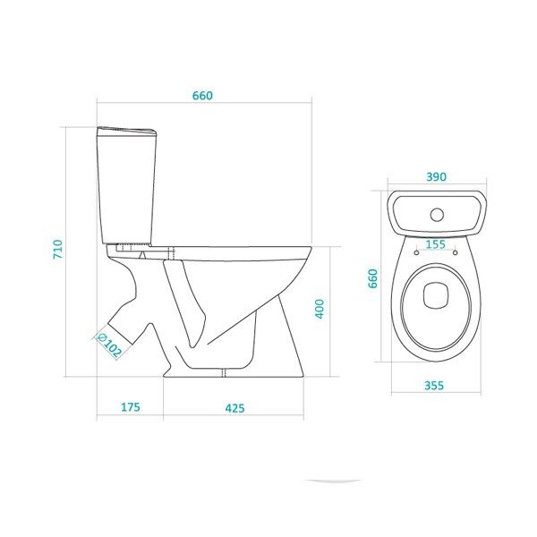 Унитаз напольный Santek - Бриз с сиденьем дюропласт с диагональным выпуском, с двухрежимной арматурой.