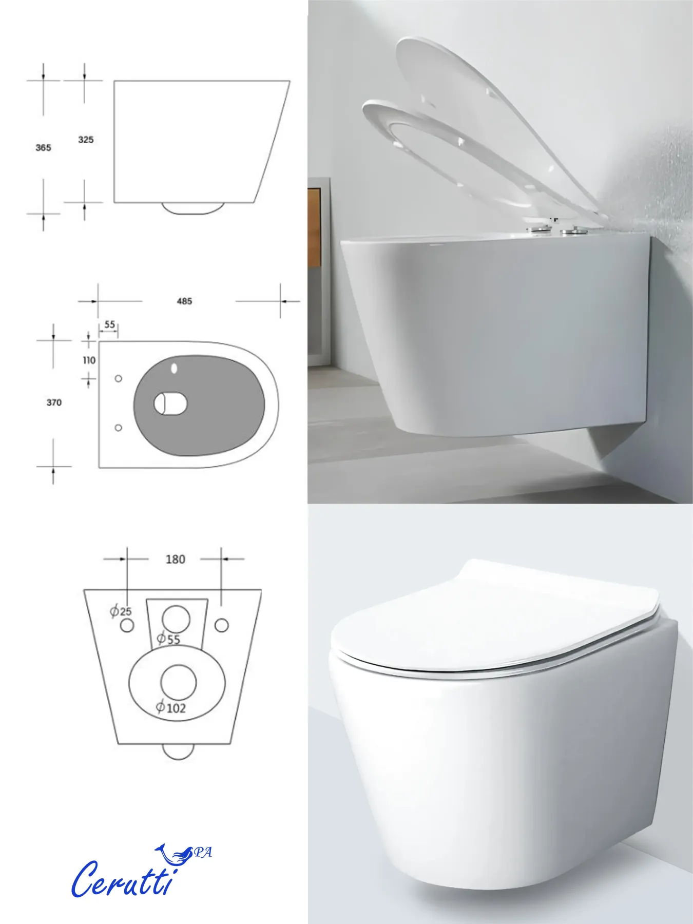 Унитаз подвесной Ceruttispa LUIGI Aria Tornado CT11101 безободковый со смывом торнадо купить