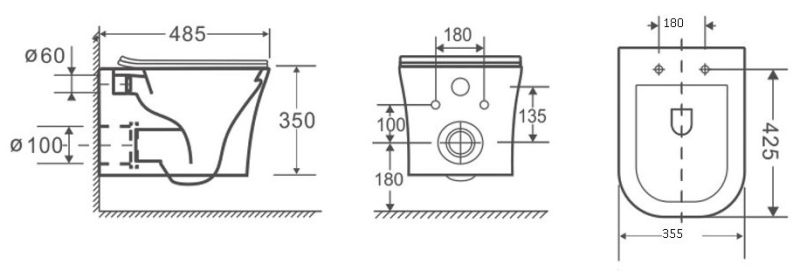 - Укороченный унитаз:нет