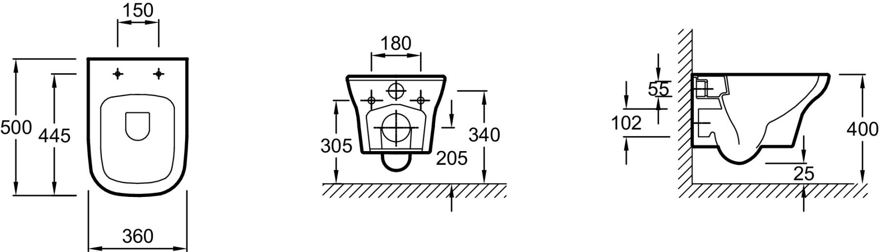 • Укороченный унитаз: