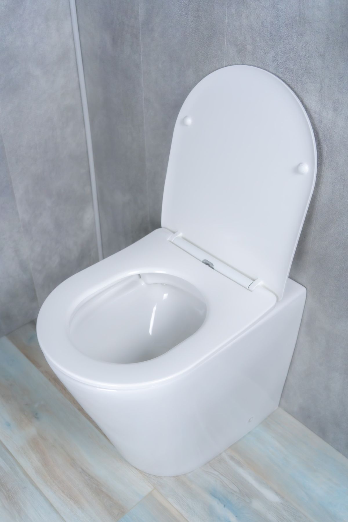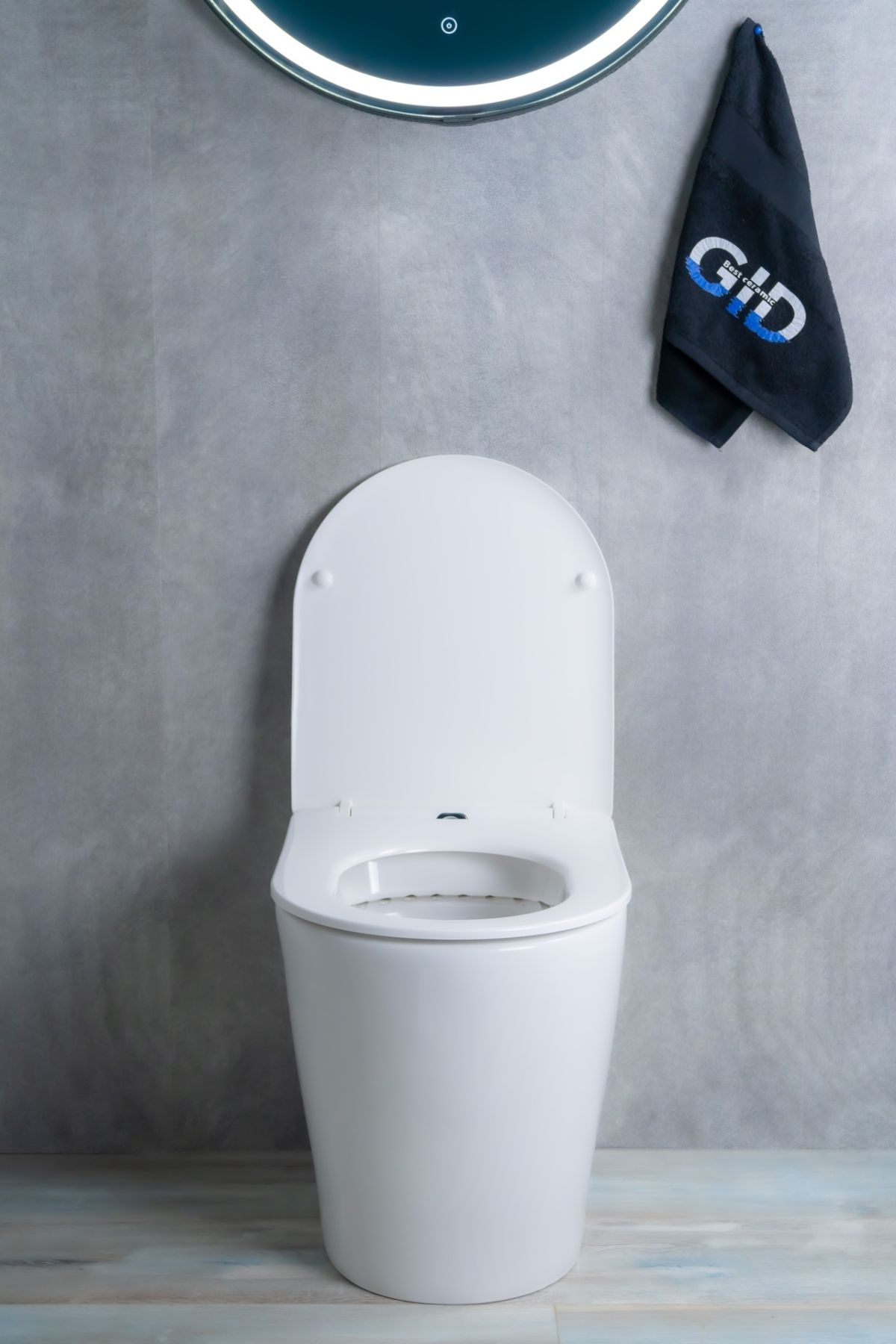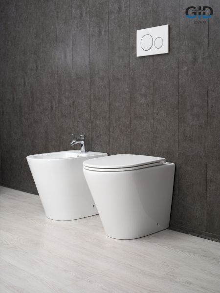 Cortado — стильная коллекция округлых унитазов и биде со скосом к низу. Испанское качество гарантирует надежность, а европейская сертификация подтверждает их качество. Приставной безободковый унитаз GiD TRS-263 — стильная напольная модель с горизонтальным выпуском предназначена для установки со скрытым бачком. Выполнен из высококачественной керамики белого цвета с глянцевым покрытием, что обеспечивает долговечность и уникальный внешний вид. Крышка унитаза изготовлена из прочного дюропласта и оснащена функцией микролифта, которая обеспечивает плавное и бесшумное опускание.