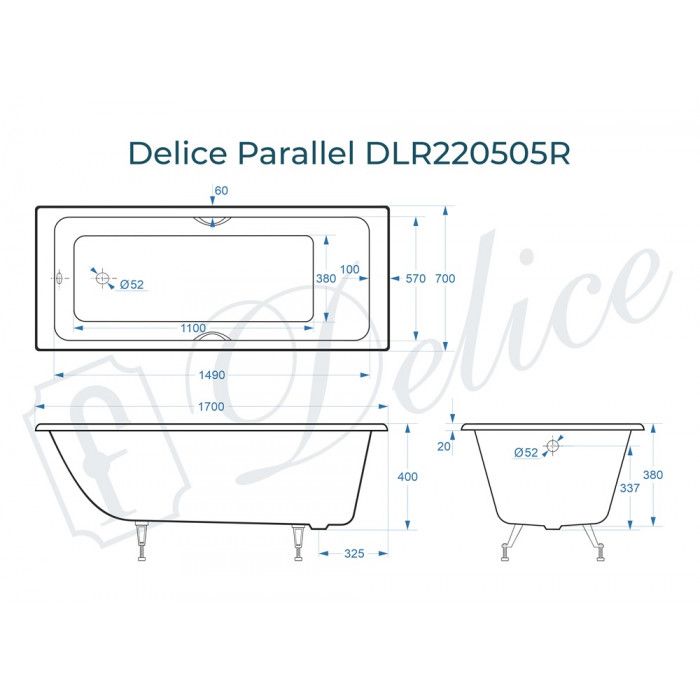 Ванна чугунная Delice Parallel DLR 220505R 170x70 с ручками купить