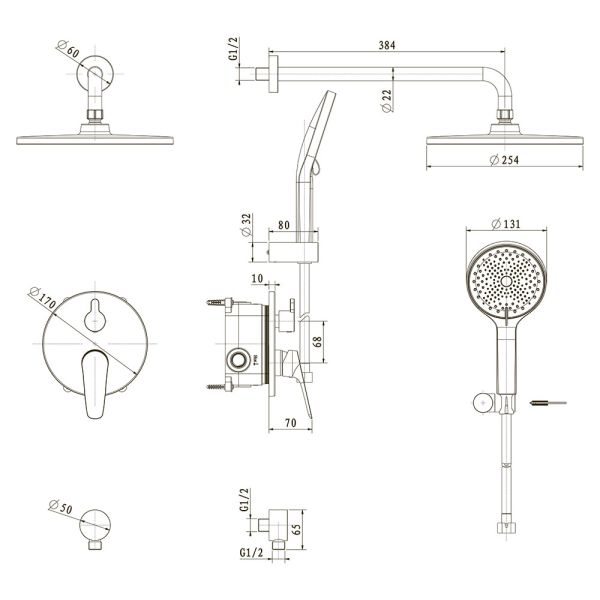 Встраиваемая душевая система TEORA, Графит брашинг