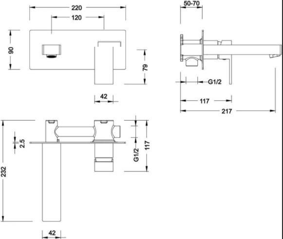 - Смеситель для раковины, скрытого монтажа