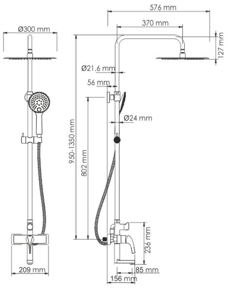- Стойка для душа, Ø 24 мм регулируемая по высоте
