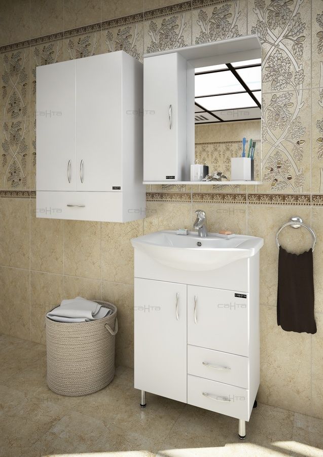 Зеркало-шкаф СанТа отлично впишется в дизайн любой ванной комнаты, будь то компактная ванная в многоэтажном доме или большой санузел в загородном коттедже.Компания СанТа использует при производстве высококачественные водоотталкивающие материалы (ВЛДСП), соответствующие всем необходимым требованиям безопасности. Коллекция выполнена в эксклюзивном дизайнерском решении в лучших традициях современного стиля. Белый, основной цвет исполнения СанТа, отлично подходящий большинству дизайнерских решений. Шкаф-зеркало предусматривает удобную и вместительную систему хранения, состоящую из полочек, дверей. Россия родина бренда СанТа, вся продукция производится со строгим соблюдением всех стандартов, благодаря чему можно быть абсолютно уверенным в надежности и высоком качестве. Зеркало-шкаф СанТа создаст уют и комфорт в любом дизайнерском решении, и ванная комната обретет неповторимый элемент интерьера.