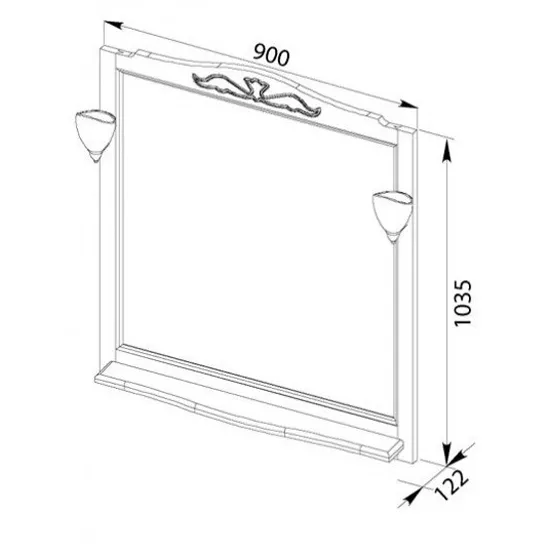 Зеркало в классическом стиле привнесет в интерьер вашей ванной комнаты уют и комфорт настоящего загородного дома. Рама изготовлена из натурального бука – теплый тон дерева и приятная фактура поверхности придают изделию качественный, добротный вид. Верх рамы украшен декоративным нанесением, оригинальная форма создает изысканный, неповторимый образ. Под зеркалом предусмотрена компактная полочка для самых необходимых средств и принадлежностей. При заказе дополнительно элегантных бра в виде цветов зеркало приобретет особый шарм. ВНИМАНИЕ! Светильники в стоимость зеркала не входят.