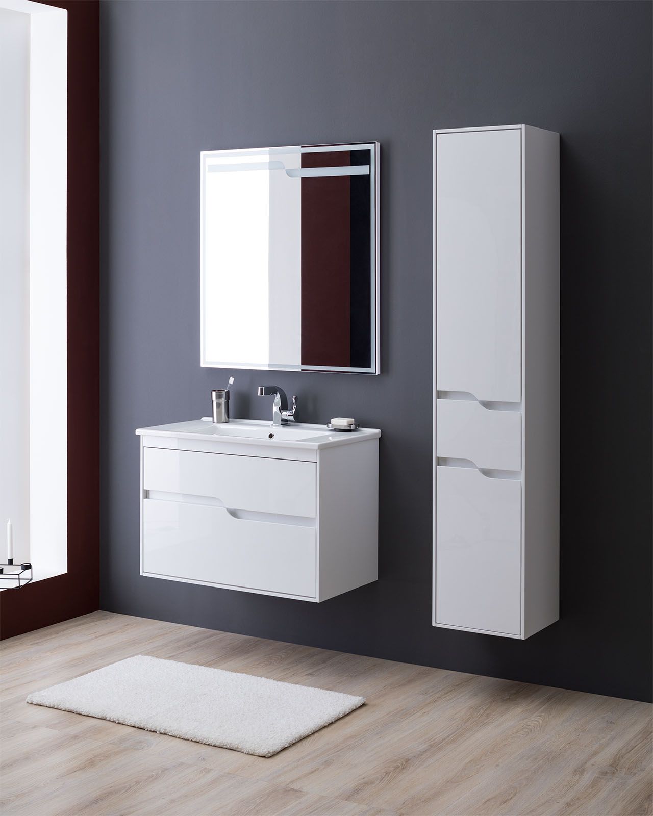 Зеркало: Aquanet Модена 85 LED, цвет белый, встроенный LED светильник