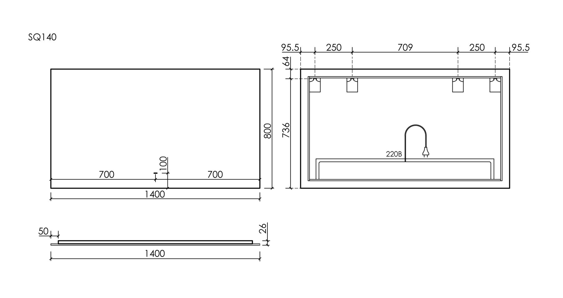 Зеркало c подсветкой Sancos Square SQ1400 140 см