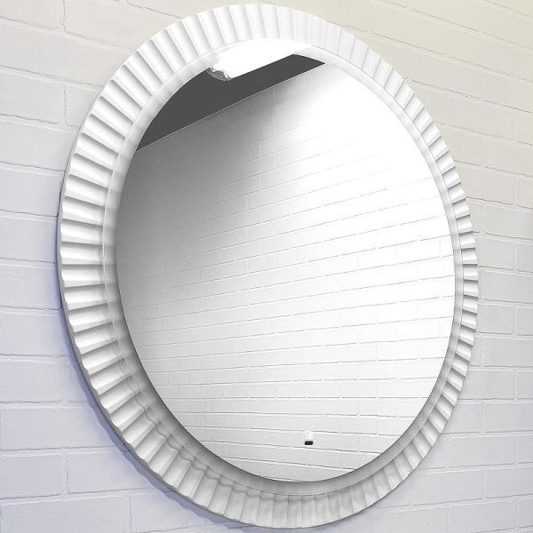 Зеркало Comforty 00-00014158 70 смЗеркало Comforty Мадрид 70 00-00014158 с подсветкой.Высококачественное зеркальное полотно с амальгамой на основе серебра. Зеркало оборудовано ореольной и фронтальной LED подсветкой. Зеркало совмещает в себе множество современных функций, включая диммирование, антизапотевание и бесконтактный выключатель, что делает их удобными и стильными для различных интерьеров. Основа зеркала из МДФ фрезерована радиальным узором в виде лучей и облицована белой матовой пленкой.Функция диммирования - данная функция позволяет регулировать яркость подсветки от минимального до самого яркого, что особенно удобно для создания <комфортного освещения.Функция антизапотевания - зеркало с антизапотеванием обеспечивают комфортное использование в условиях повышенной влажности, не требуя дополнительного времени на очистку от конденсата.Бесконтактный выключатель - использование бесконтактного выключателя обеспечивает удобство в эксплуатации, позволяя включать и выключать подсветку простым движением руки, при этом поверхность зеркала остается чистой.Характеристики:Материал корпуса: МДФ.